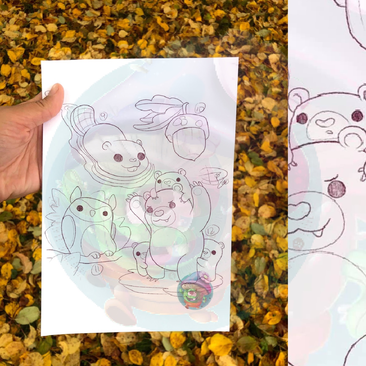 Mot(s) clé(s) : Ours ourson hibou castor bleuet bleuets fruit fruits noisette noisettes porc épic orignal écureuil moufette champignon animaux forêt