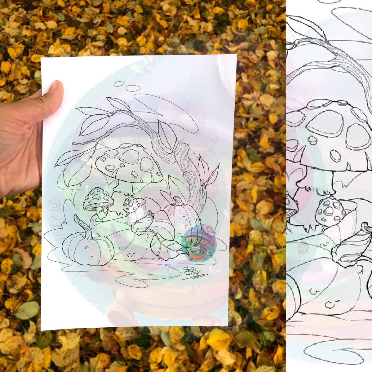 Mot(s) clé(s) : Champignon courges citrouille courge forêt nature automne branche