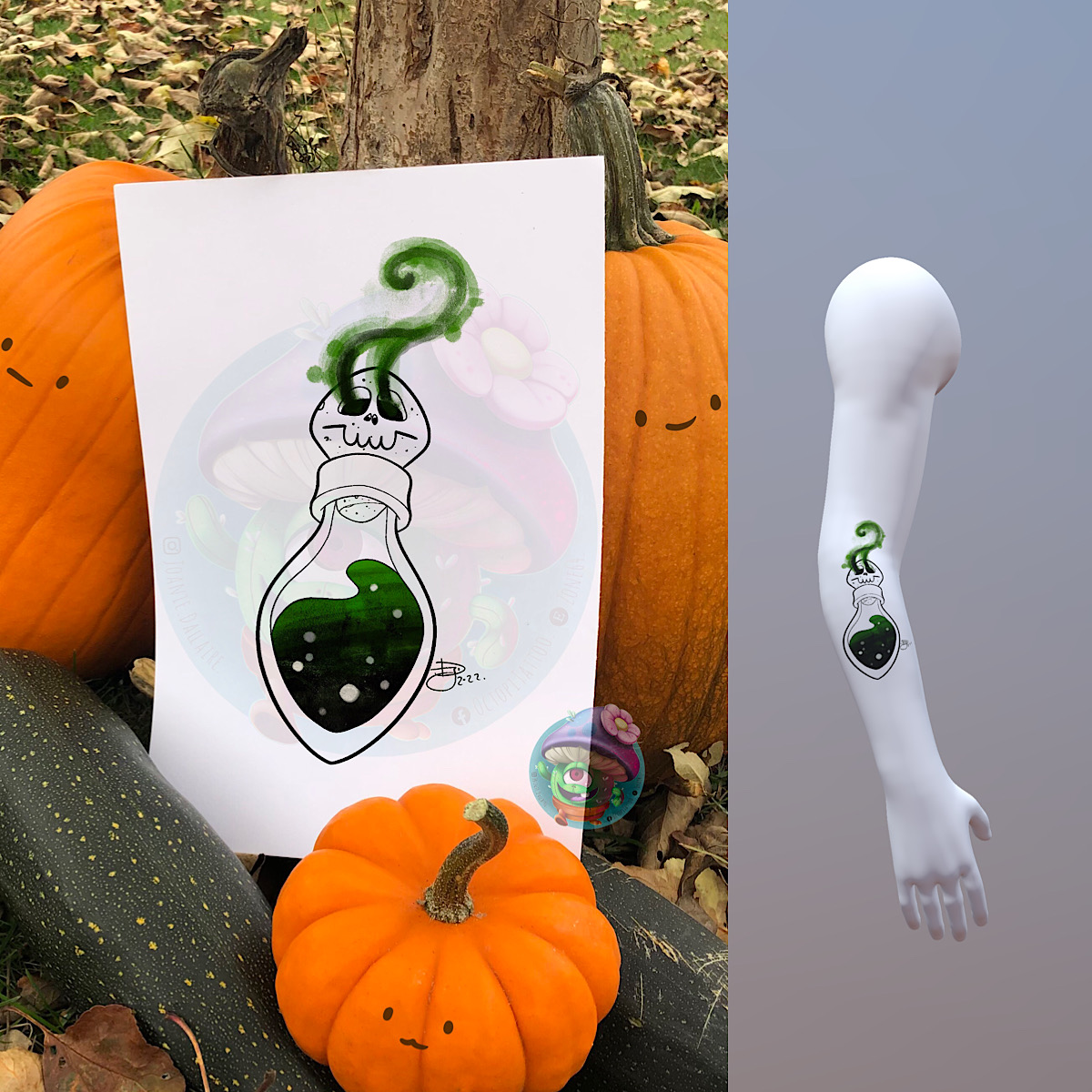 Catégorie(s) : Cartoon, Couleur, Creepy (creepy cute), Fiole bouteille, Halloween, New school, Objet, Skull