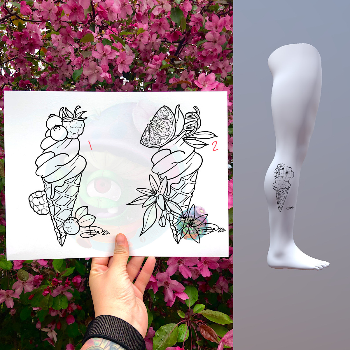 ** Le dessin sera tatoué en couleur et celles-ci seront choisies le jour du tatouage avec le client **