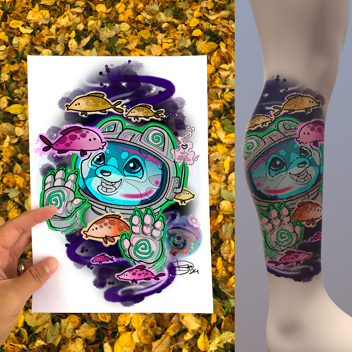 ** Le dessin sera tatoué en couleur et celles-ci seront choisies le jour du tatouage avec le client **