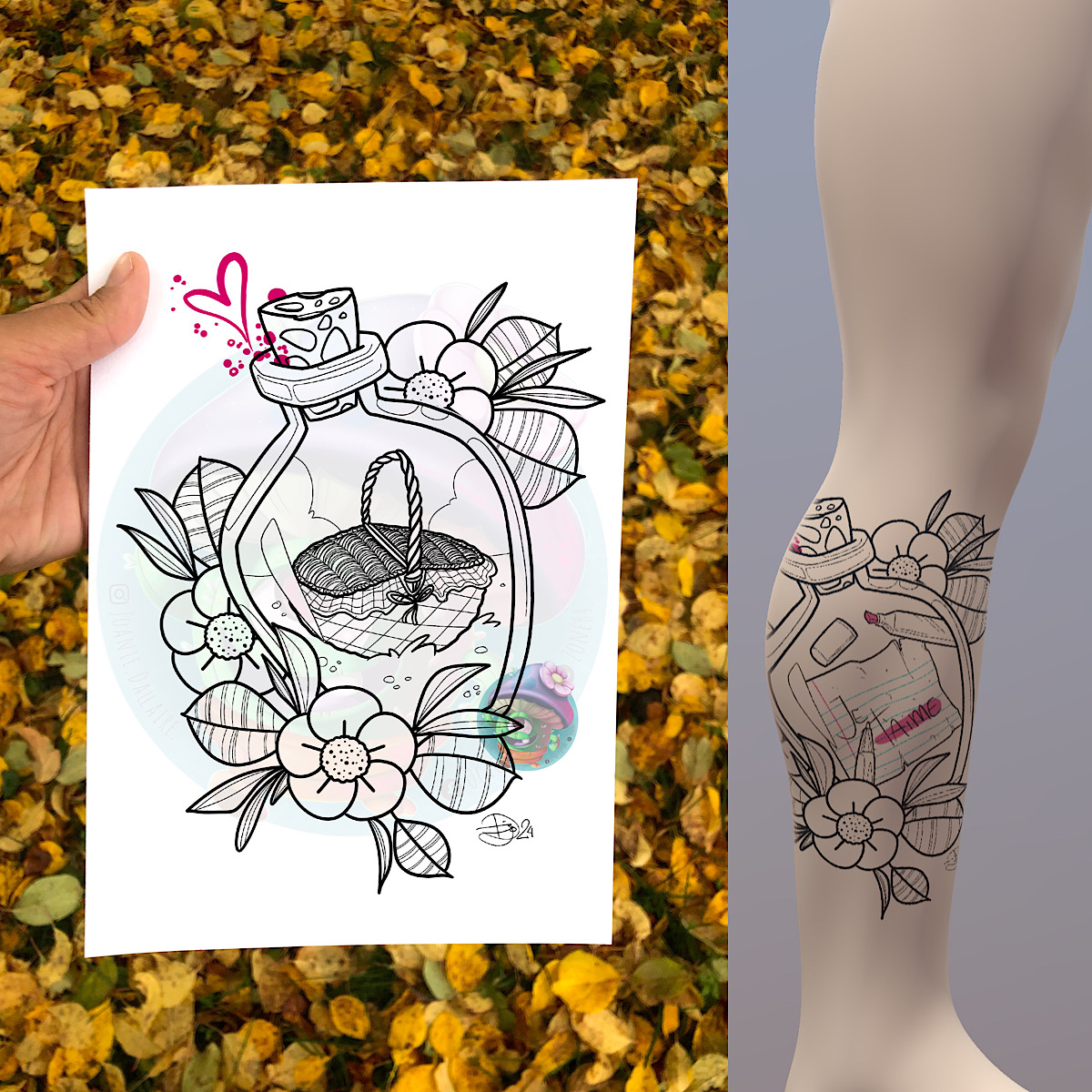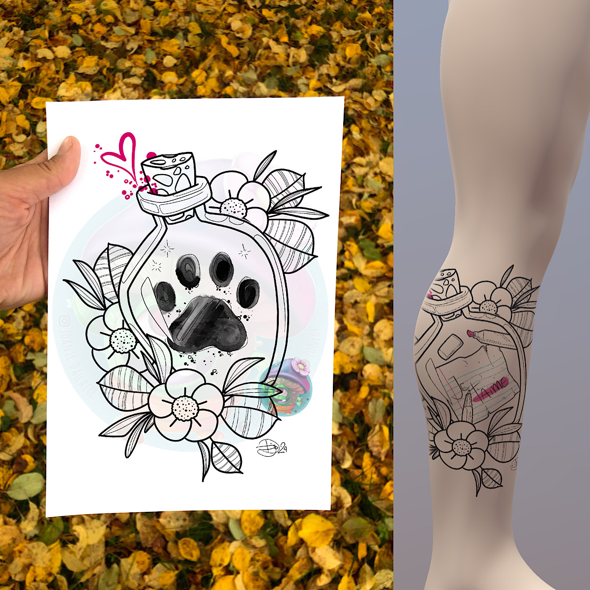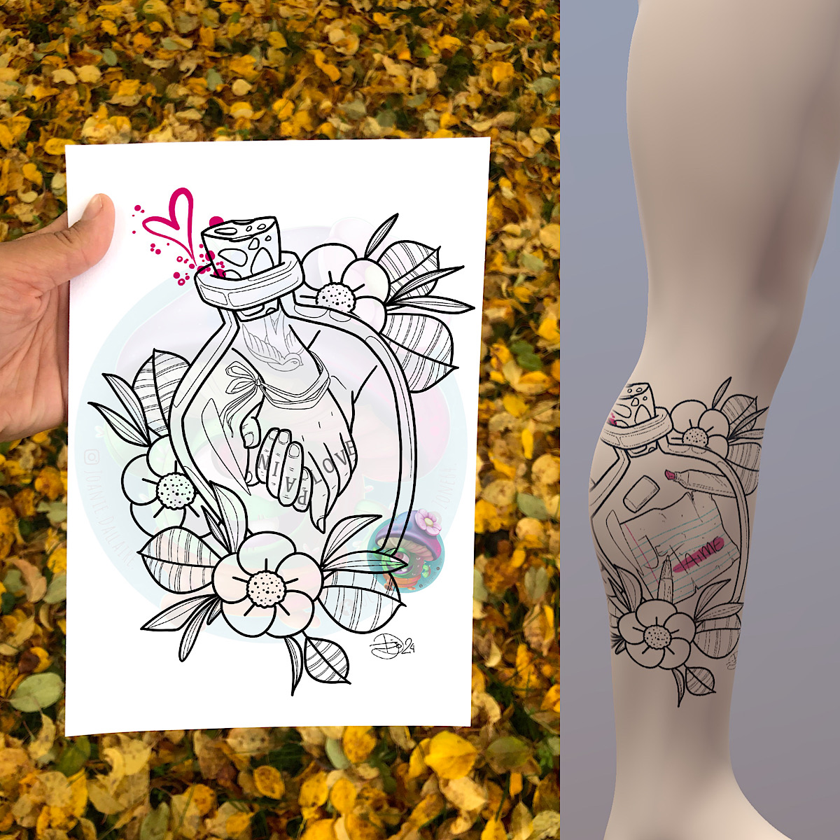 ** Le dessin sera tatoué en couleur et celles-ci seront choisies le jour du tatouage avec le client **