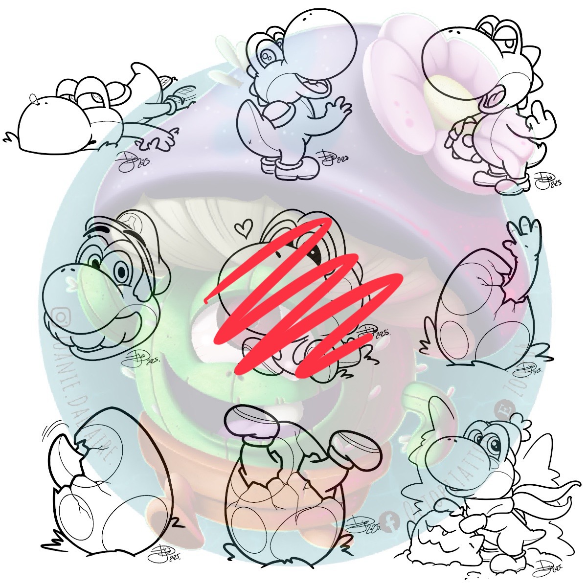 Précision : Les dimensions indiquées varient selon le dessin (les œufs sont clairement plus petits) et (le yoshi d'hiver est certainement plus grand un peu). Juste à me demander via messenger si tu as des questions