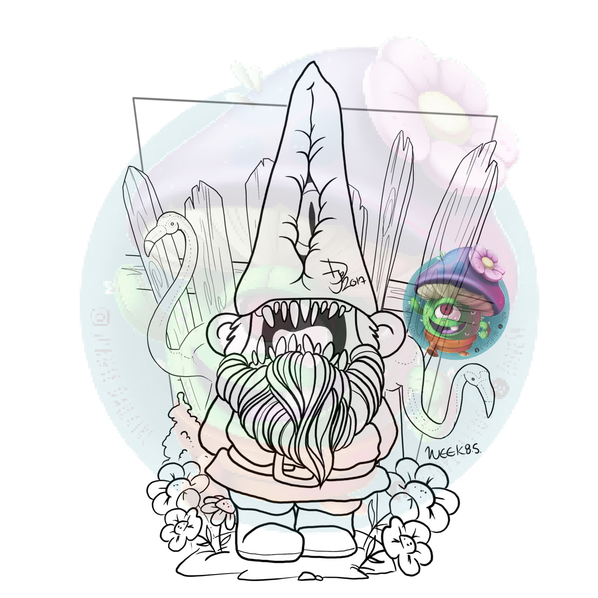 Emplacements proposés :Mot(s) clé(s) : Nain nain de jardin creepy flamant rose fleur floral