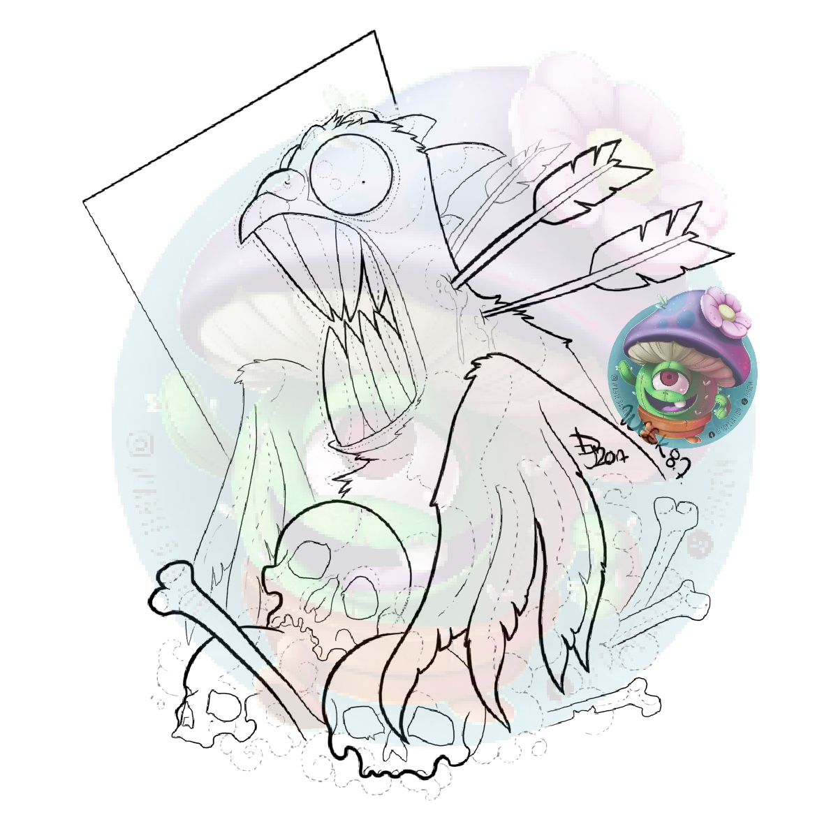 Emplacements proposés :Mot(s) clé(s) : Pigeon oiseau monstre oiseaux crâne crânes os flèches flèche creepy spooky