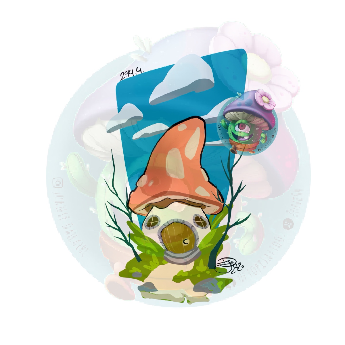 Emplacements proposés :Mot(s) clé(s) : Maison champignon nature paysage nuage