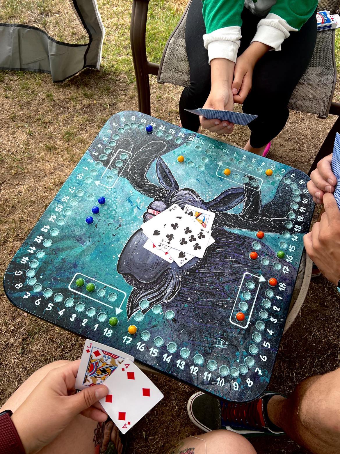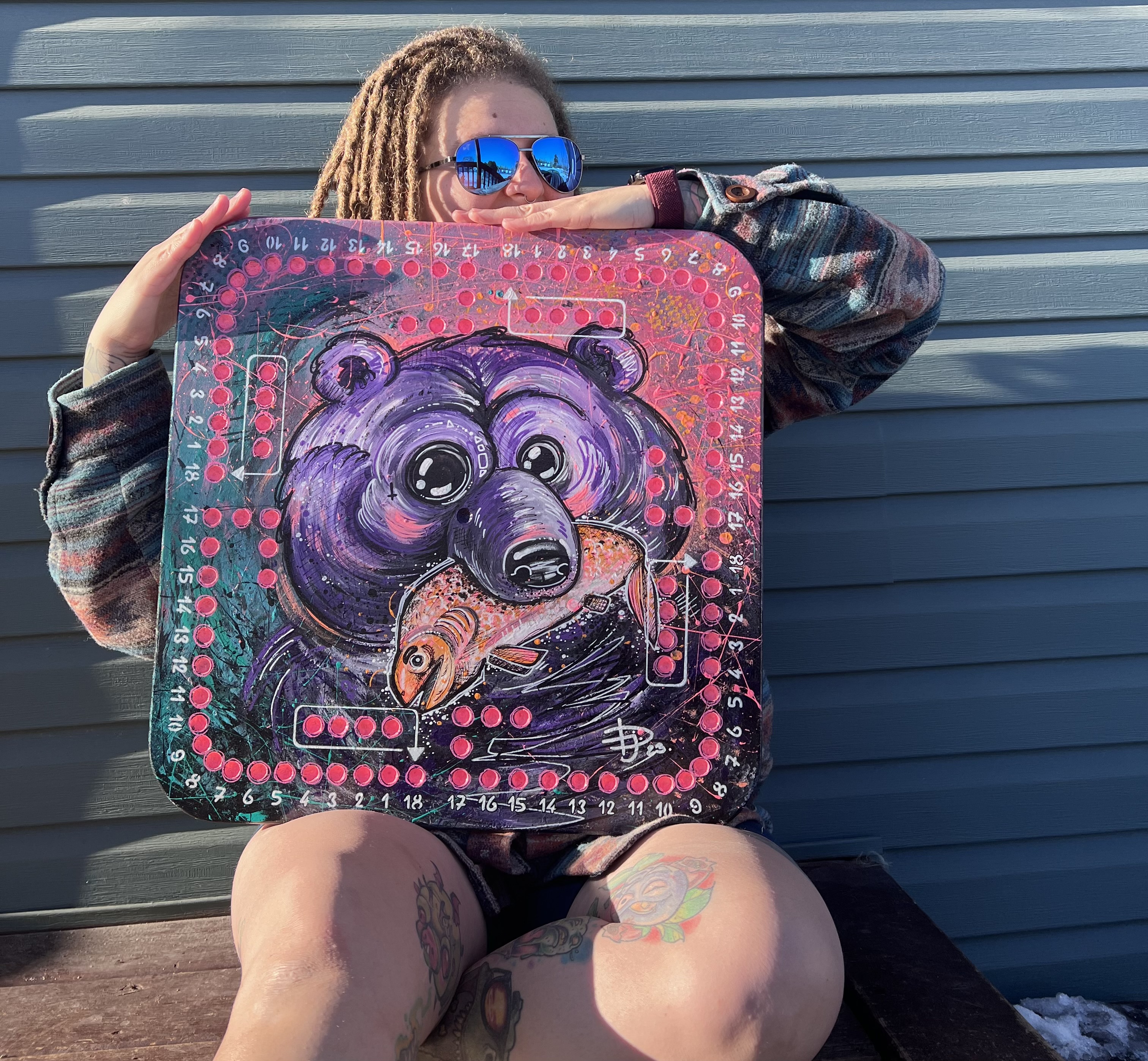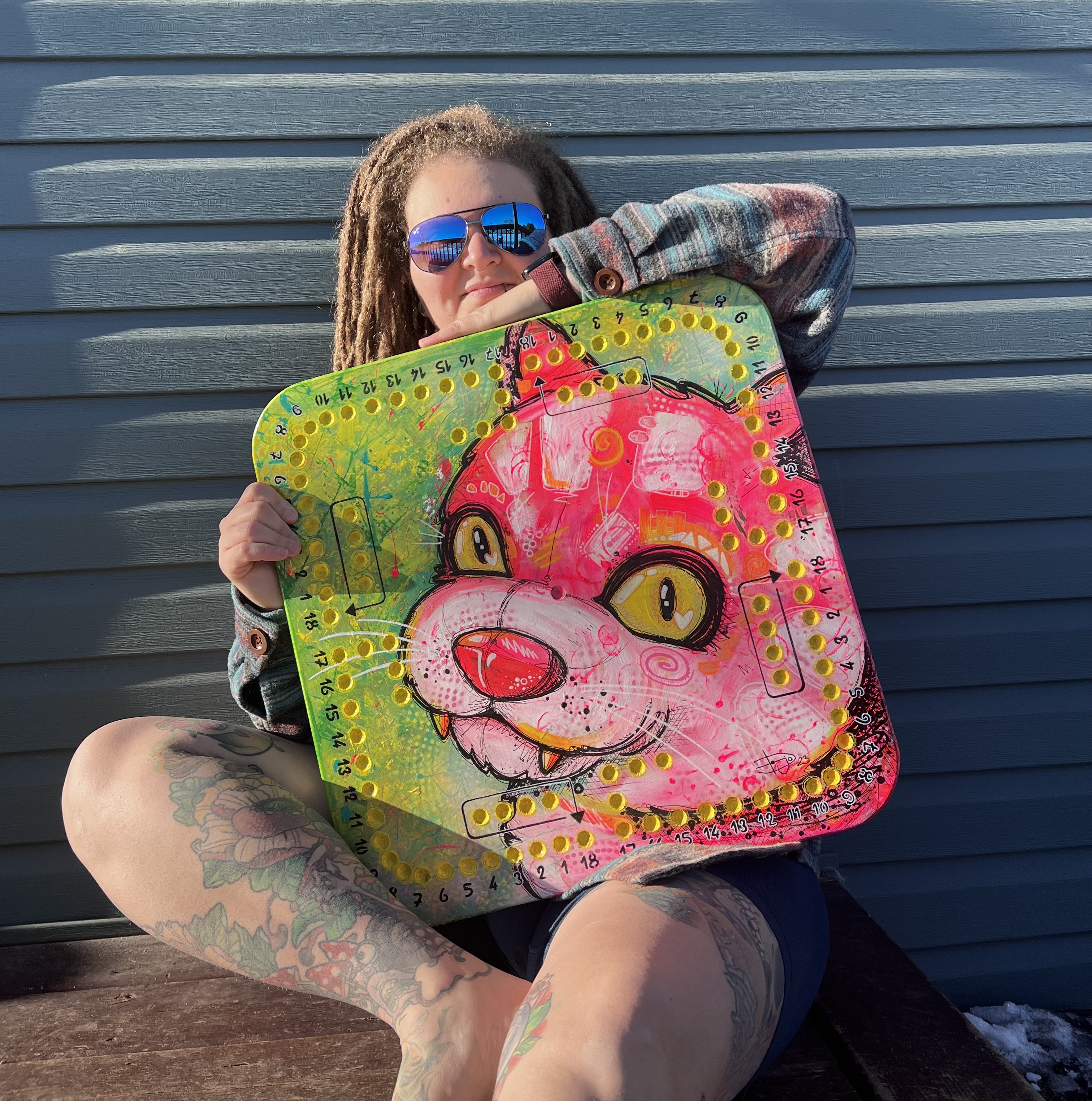 J'ai repensé la disposition des trous d'une planche de Tock de façon à pouvoir faire un oeuvre avec la planche qui s'accroche au mur comme déco mais qui est utilisable aussi pour jouer 🤯🤩. Elle sont faite entièrement par mes petits doigts avec amour et tendresse 🥰. Voir les détails en bas de la photo !