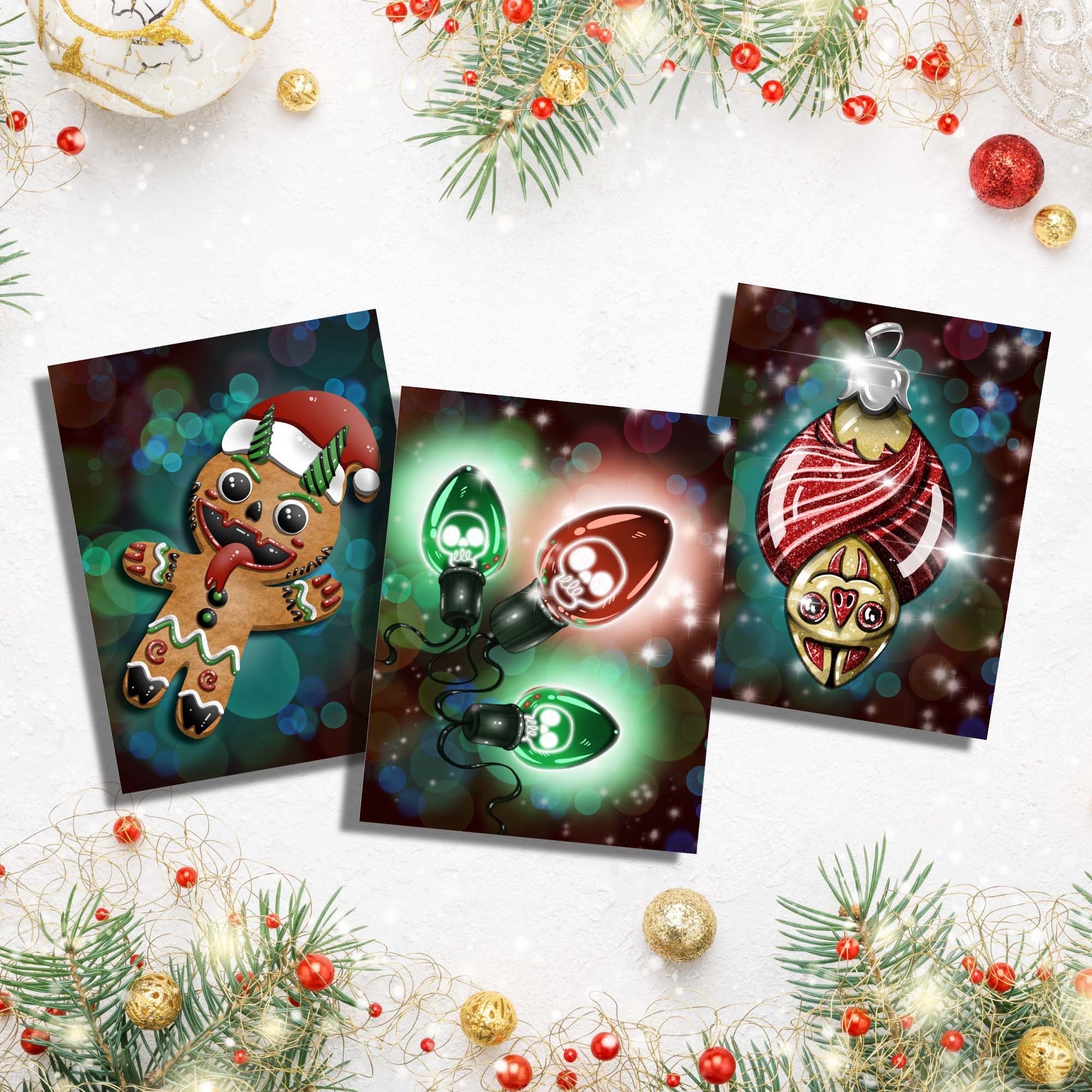 Cartes de Noël (lot de 3) mignonnes et effrayantes.