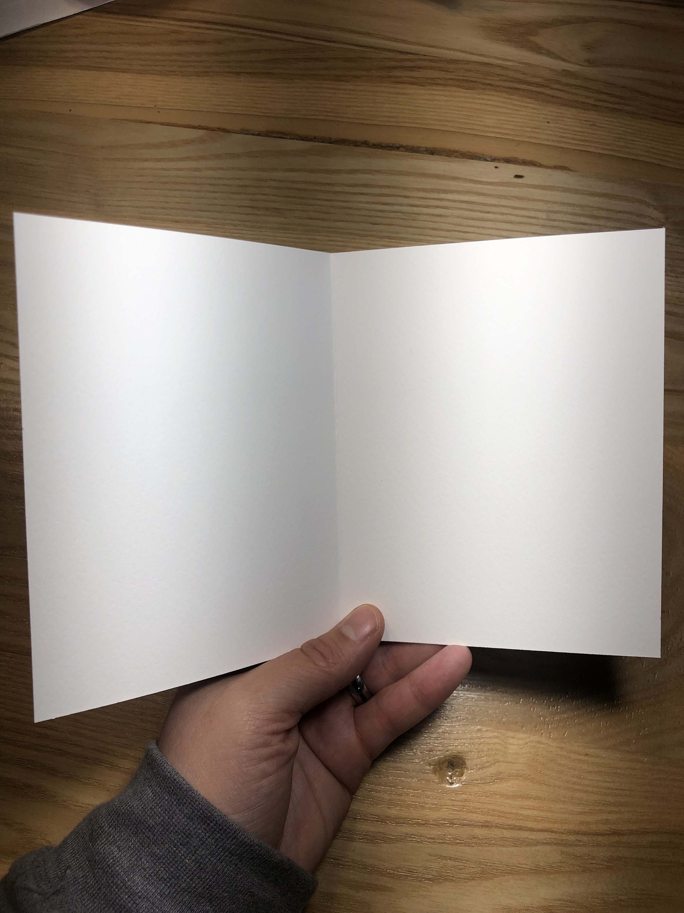 -Chaque carte mesure, 10.7 cm par 14 cm et vient avec sa propre enveloppe blanche.