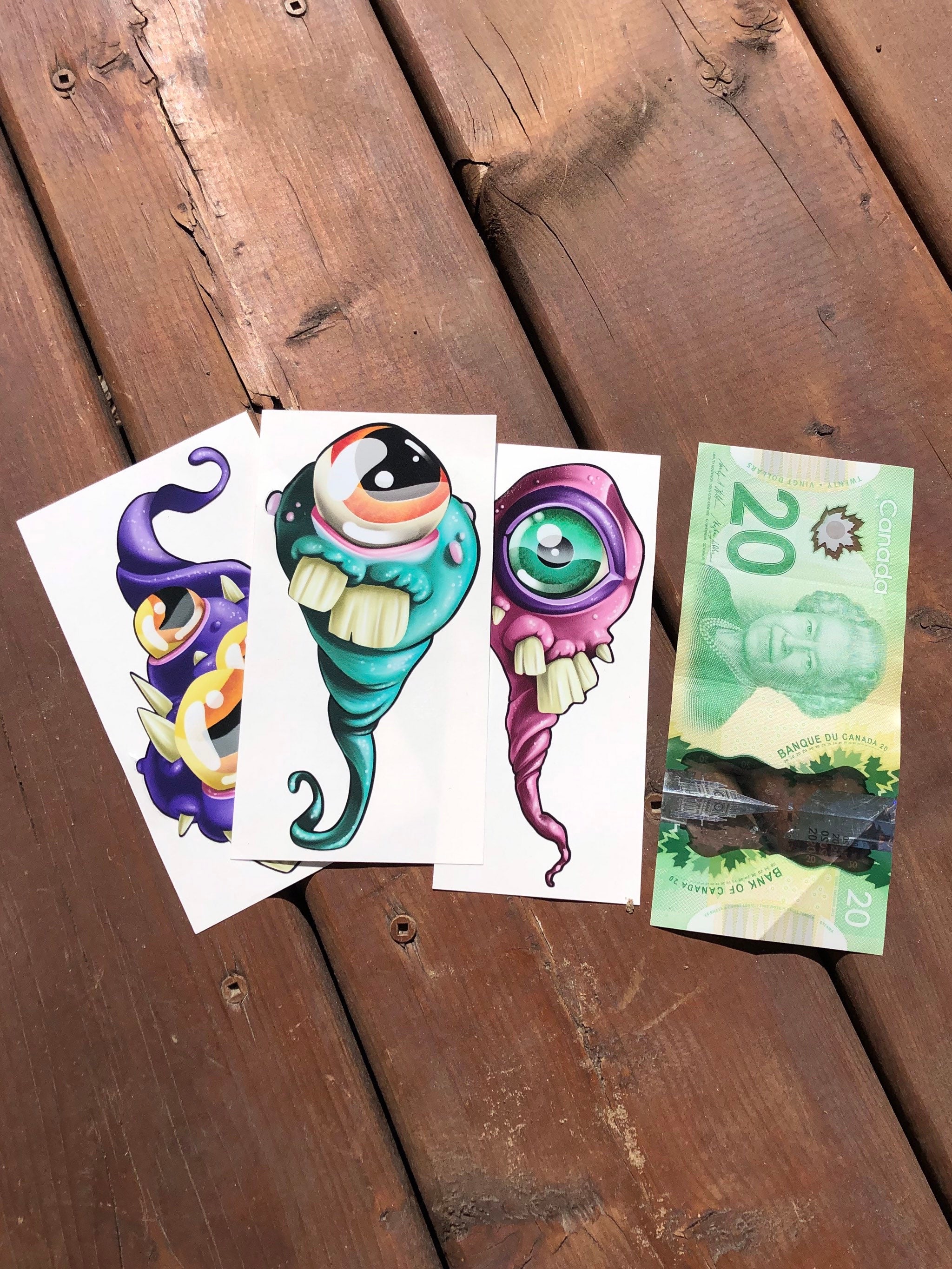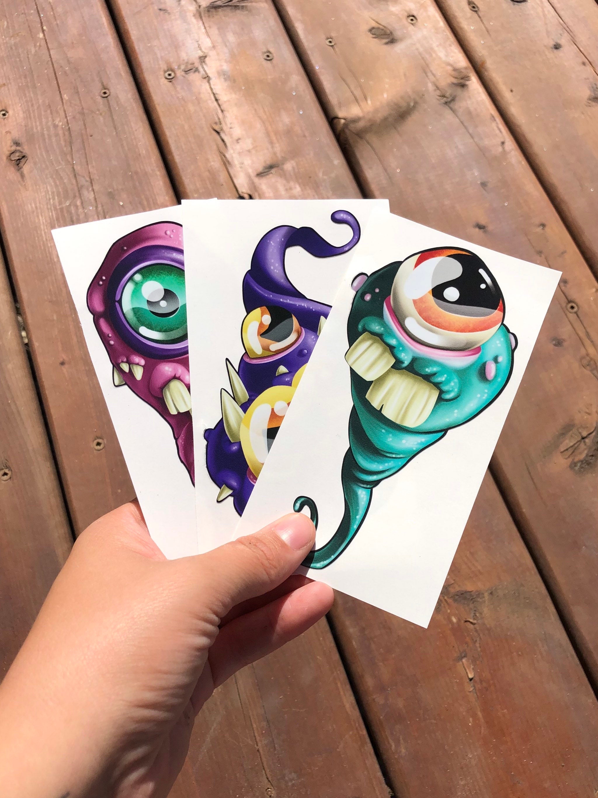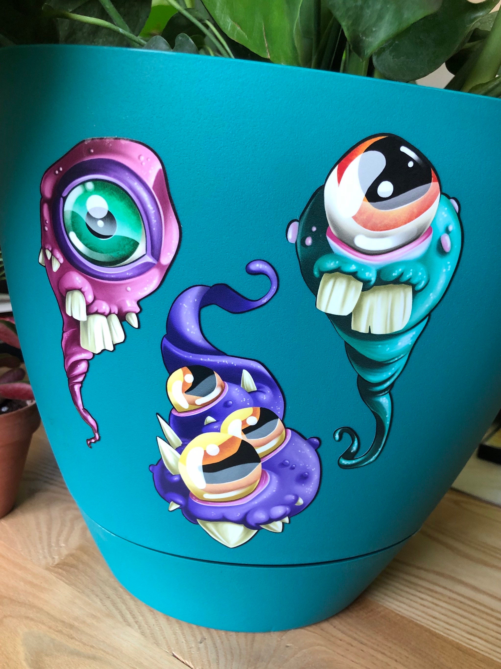 Un set de 3 autocollants aux couleurs vibrantes en vinyle hyper résistant.