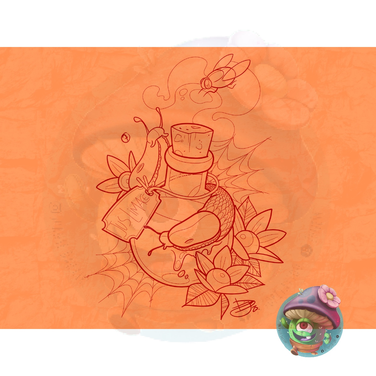 Mot(s) clé(s) : Fiole flask bouteille limace toile araignée floral fleur œil ha̱lloween Automne spooky