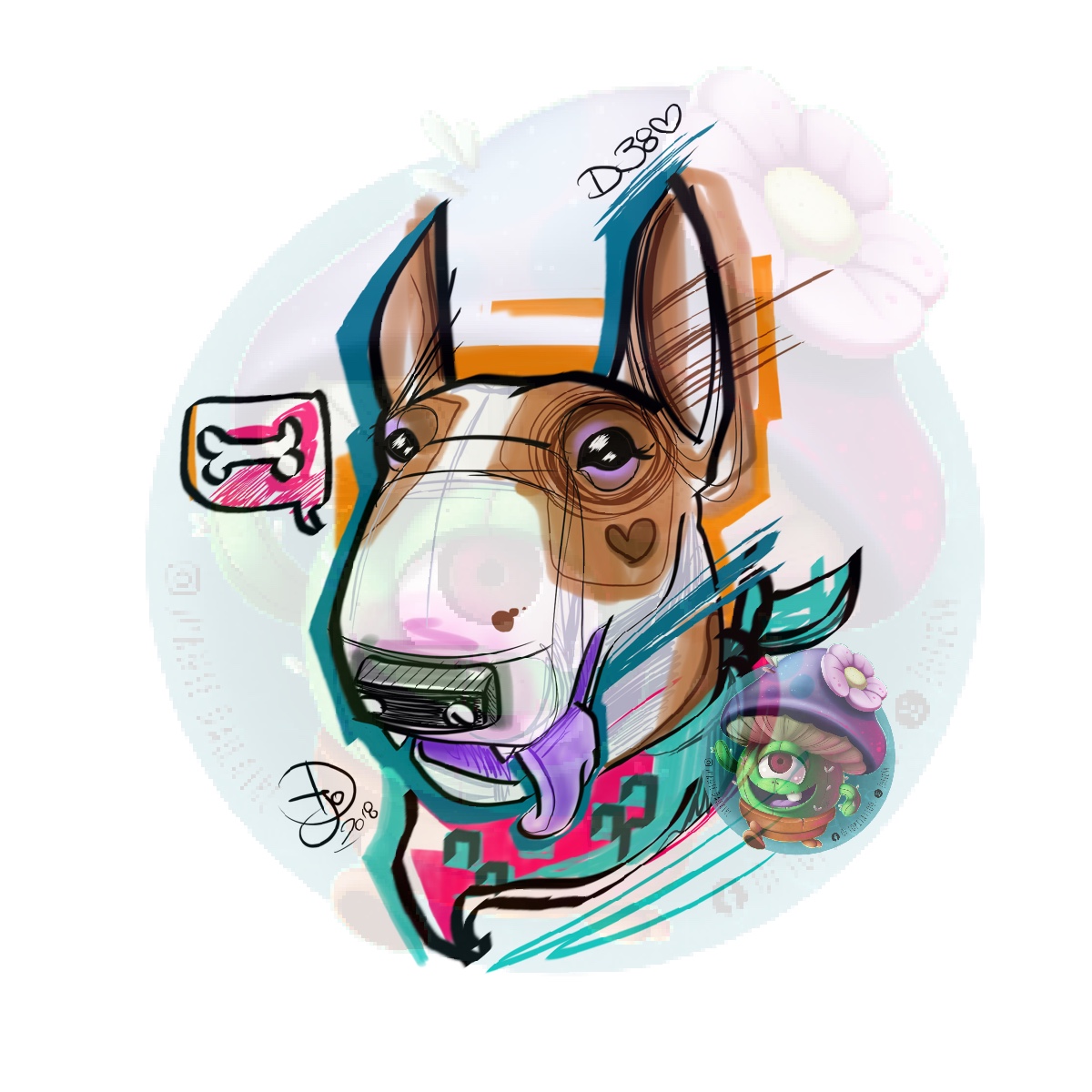 Emplacements proposés :Mot(s) clé(s) : Bull terrier chien os foulard sketchy